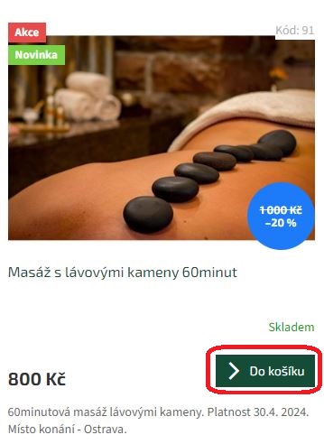 1 ) K nákupu u dané nabídky stačí kliknout na zelené tlačítko „Přidat do košíku“